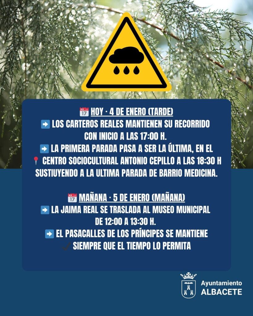 - El recorrido de los Carteros Reales de los Reyes se modifica en Albacete ante la previsión de lluvia