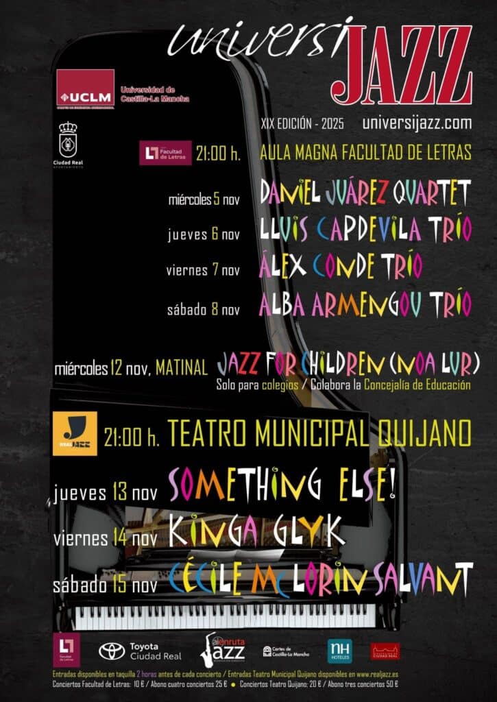 La 19ª edición de Universijazz va a ofrecer un total de ocho conciertos en dos sedes distintas de Ciudad Real, ya que la Facultad de Letras acogerá los conciertos de jazz nacional y el Teatro Quijano albergará las formaciones internacionales y, como novedad, una sesión destinada a los escolares.