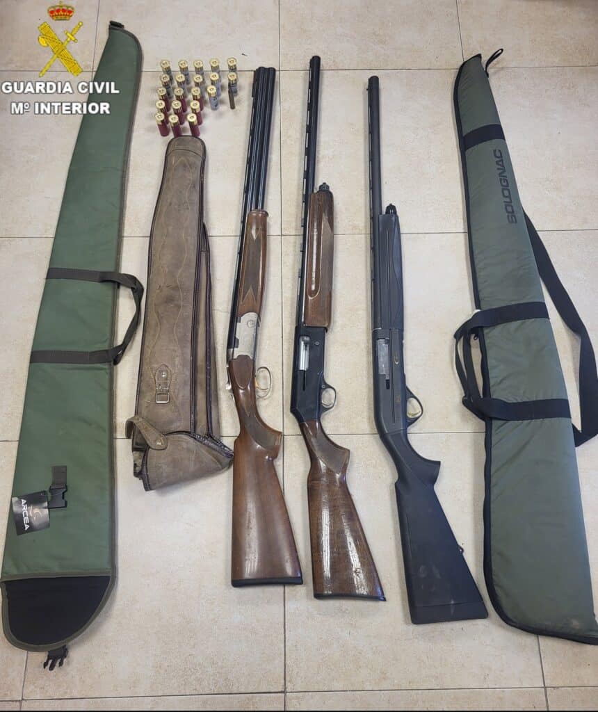 Se ha recuperado parte de los objetos sustraídos que se encontraban en el interior de la furgoneta; unas palas de pádel, una cazadora, gafas de sol y de visión, documentación de vehículos, juegos de llaves, mandos de garaje y papeletas de lotería, siendo de notoria importancia la recuperación de tres escopetas de caza junto con su munición que el detenido había escondido en un olivar de la zona.