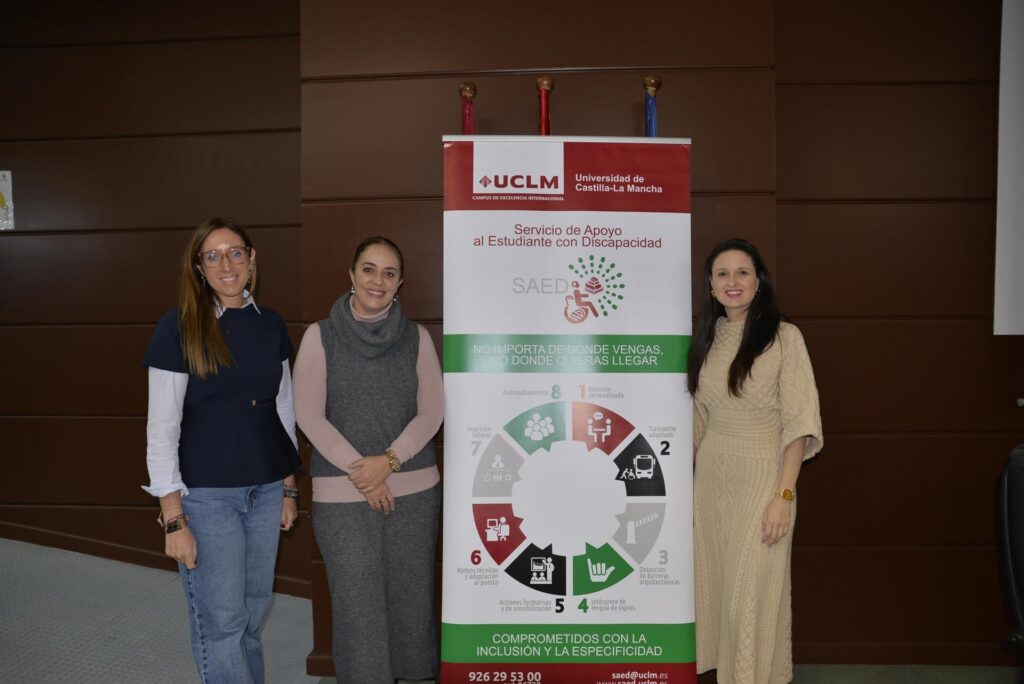 Elena García Caballero graduada en Relaciones Laborales y Recursos Humanos por la UCLM y primera estudiante con discapacidad auditiva en cursar sus estudios con un implante coclear en esta institución académica; Mireia Cabañes y Paloma Oñate, comunicadoras y paralímpicas en la modalidad de surf adaptado con varias medallas mundiales y europeas en su palmarés, han relatado en primera persona su experiencia personal y profesional tratando de sensibilizar a la comunidad universitaria de las barreras físicas, sociales, laborales y culturales que limitan la plena participación de las personas con discapacidad en la vida cotidiana.