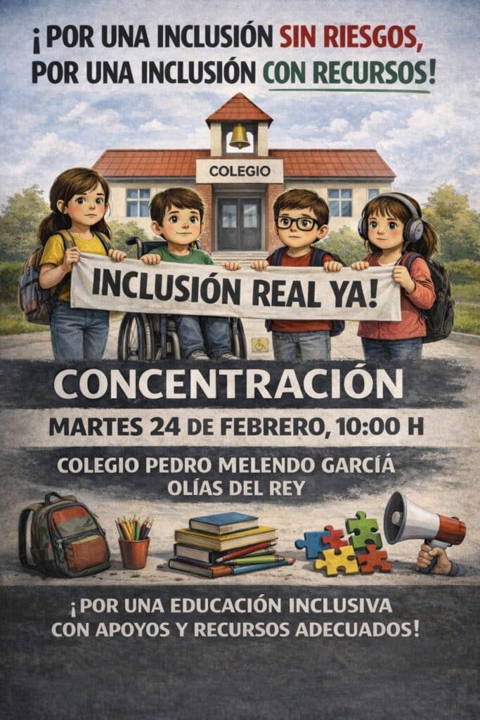 Los convocantes aseguran que «la inclusión educativa no puede hacerse sin recursos ni poniendo en riesgo al alumnado ni al profesorado». «Defender la inclusión es exigir apoyos reales, profesionales suficientes y condiciones adecuadas para que todos los niños y niñas estén protegidos y atendidos como merecen».