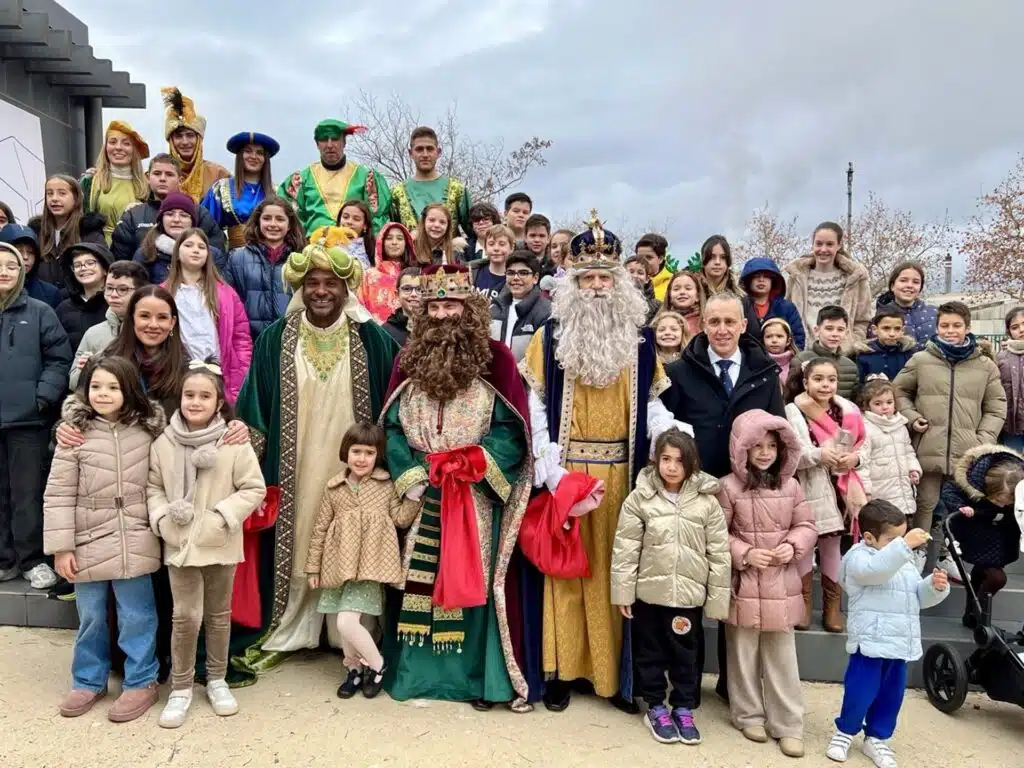 A la llegada de sus majestades los niños, visiblemente nerviosos, han cantado villancicos y se han hecho numerosas fotos, y todas las familias han podido degustar el tradicional roscón, echar las cartas en el buzón real y brindar con los soberanos de Oriente.
