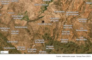 Mapa del accidente laboral en la Puebla de Montalbán, con un trabajador que se ha caído de un tejado.