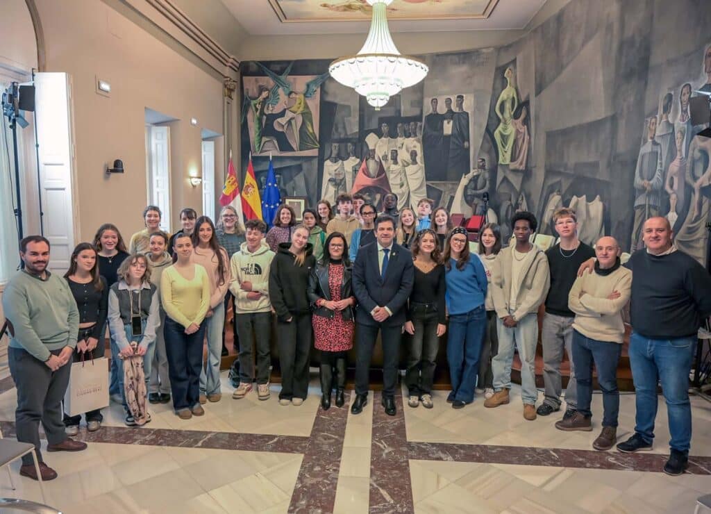 El presidente de la Diputación de Ciudad Real, Miguel Ángel Valverde Menchero, ha recibido a un grupo de alumnos franceses procedentes de la región de Normandía que visitan la capital gracias a un intercambio educativo formalizado con el Instituto del Torreón del Alcázar.