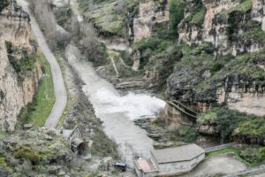 En la Cuenca del Río Alberche, la presa de La Aceña está liberando agua a 10 metros cúbicos el segundo (m3/s). El caudal desembalsado va a parar al cauce del río Aceña.