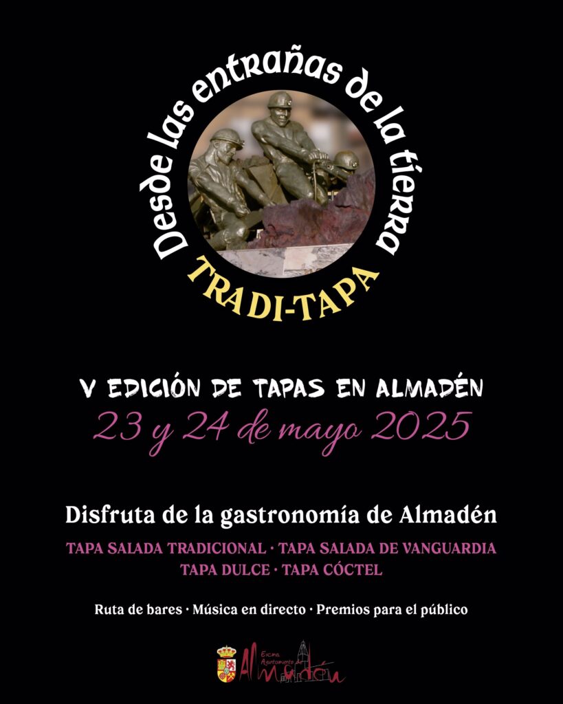 Cartel de TradiTapa. Publicado 23 May 2025 11:44 CIUDAD REAL 23 May. – El Ayuntamiento de Almadén, en colaboración con los establecimientos hosteleros del municipio, celebra este viernes y sábado, días 23 y 24 de mayo, la ‘V Edición de TradiTapa’, una cita gastronómica ya consolidada que pone en valor la cocina tradicional y la […]