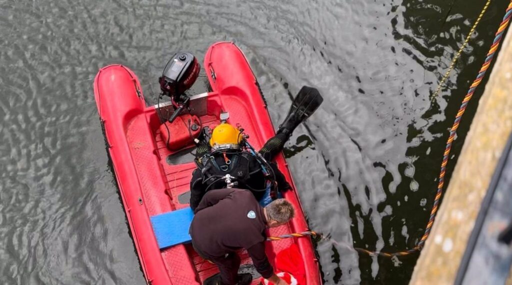 Buzos inspeccionan la toma de agua del embalse de Fresneda para mejorar la captación de agua de Valdepeñas