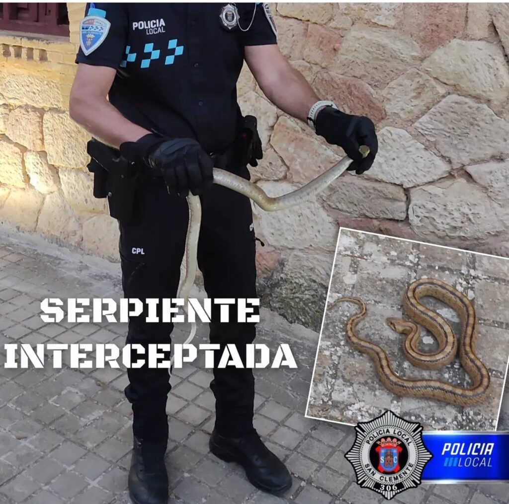 La Policía Local de San Clemente intercepta una serpiente en el entorno de la Plaza de Toros