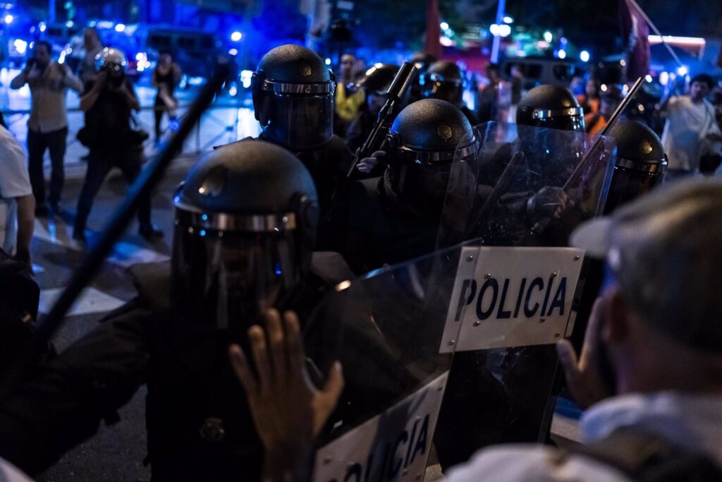 Vox lidera una manifestación de protesta contra Sánchez que acaba con disturbios entre manifestantes y policía