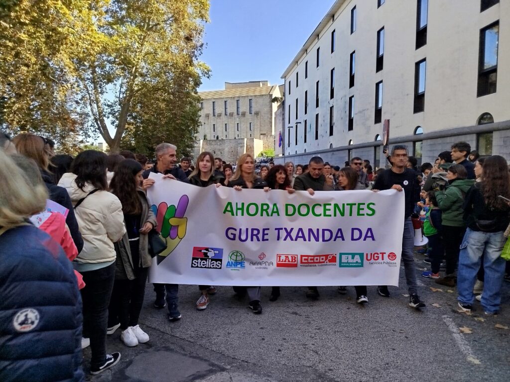 Imagen de la manifestación desarrollada en Pamplona el marco de la huelga en la enseñanza pública convocada por Steilas, ANPE, Afapna, LAB, CCOO, ELA y UGT Publicado 29 Oct 2024 12:02 PAMPLONA, 29 Miles de docentes, unos 4.000 según las primeras estimaciones de la Delegación del Gobierno, han recorrido este martes las calles de Pamplona, […]