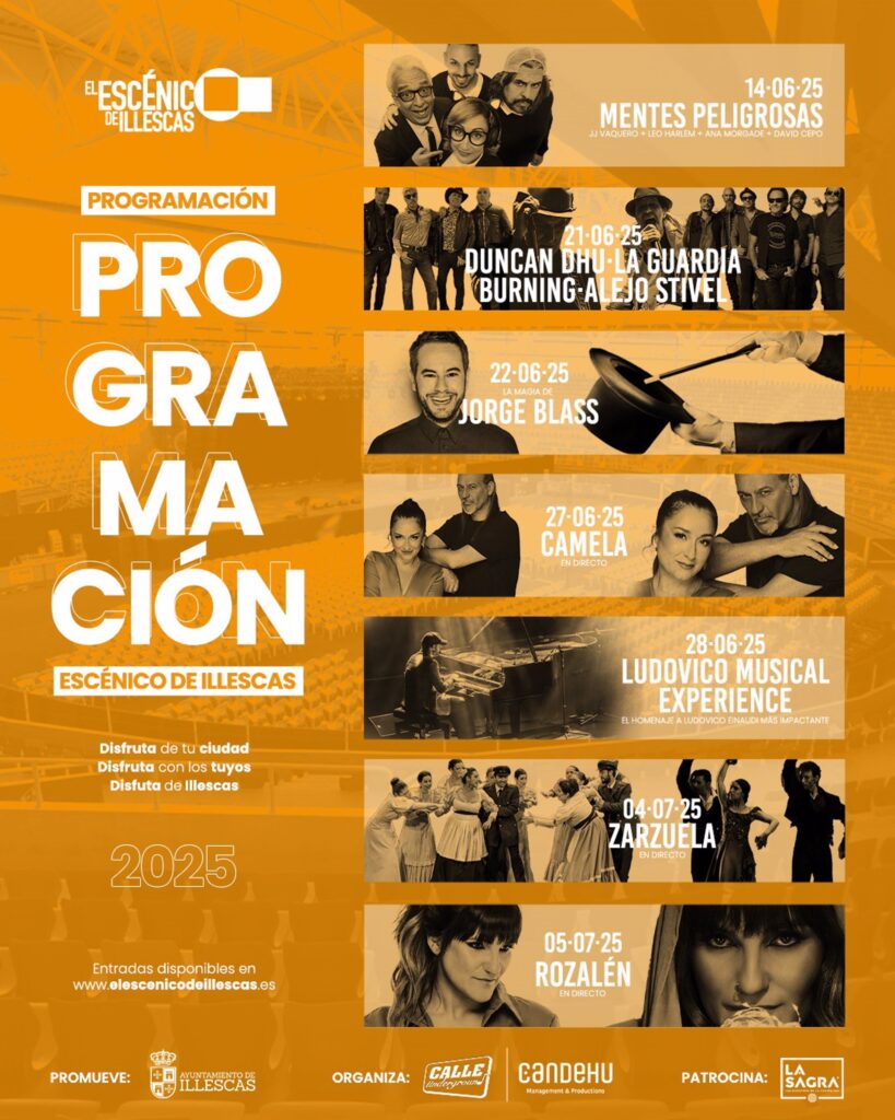 Camela, Leo Harlem, Jorge Blass y Rozalén pasarán por el Escénico de Illescas en junio y julio Publicado 20 Apr 2025 10:15 TOLEDO 20 Abr. – El Espacio Escénico Cubierto de Illescas acogerá durante el mes de junio y el primer fin de semana de julio siete actuaciones de artistas, como Camela, Rozalén, Leo Harlem […]