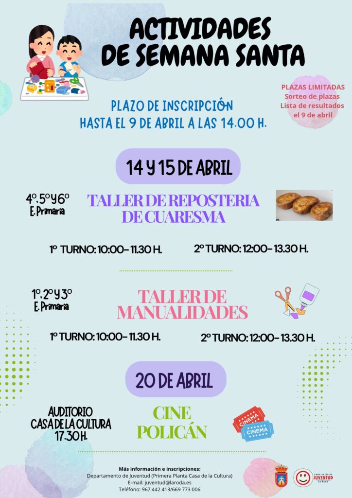 La Roda organiza una programación lúdica de repostería, cine y manualidades para alumnos de Primaria en Semana Santa
