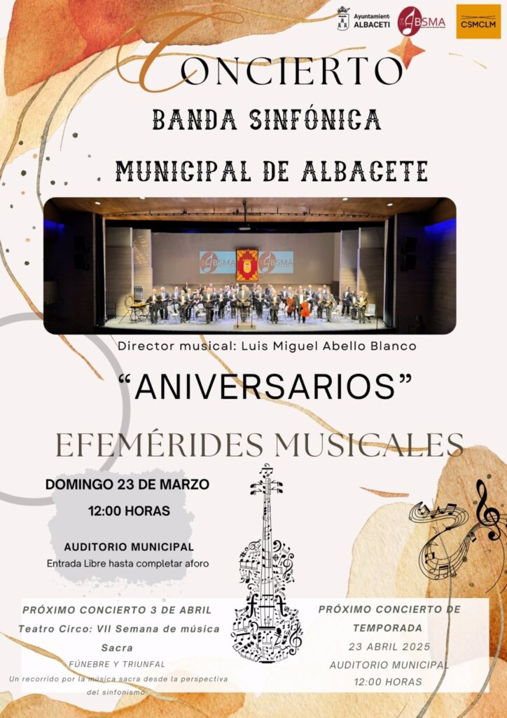 La Banda Sinfónica de Albacete conmemora este domingo grandes efemérides de la historia de la música