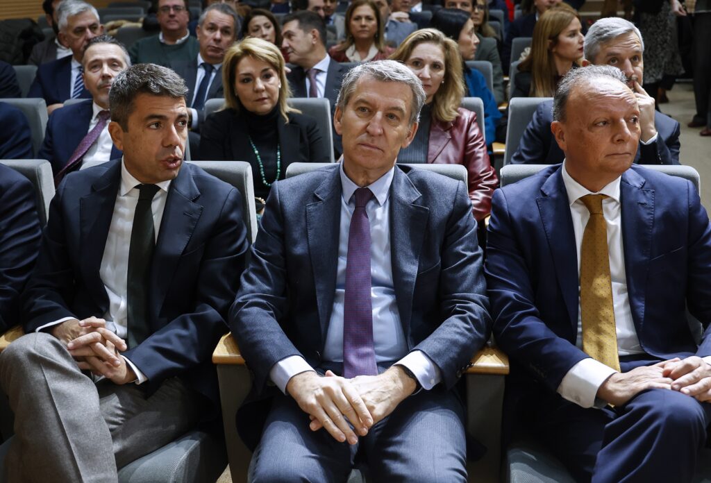 El presidente del Partido Popular, Alberto Núñez Feijóo, el president de la Comunidad Valenciana, Carlos Mazón, y el presidente de la CEV, Salvador Navarro, durante un encuentro empresarial, en la sede de la CEV, a 20 de enero de 2025, en Valencia, Com Publicado 20 Jan 2025 11:13 Dice que un Gobierno no puede cesar […]