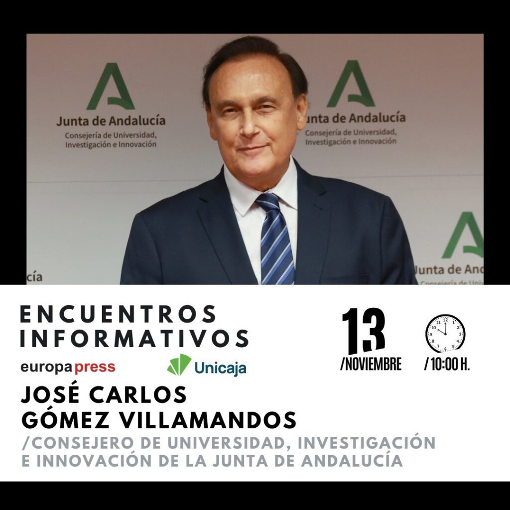 Cartel anunciador del encuentro informativo de Europa Press Andalucía con el consejero de Universidad, Investigación e Innovación, José Carlos Gómez Villamandos, el próximo 13 de noviembre en Sevilla Publicado 11 Nov 2024 12:12 SEVILLA, 11 El consejero de Universidad, Investigación e Innovación de la Junta de Andalucía, José Carlos Gómez Villamandos, participa este miércoles, 13 […]